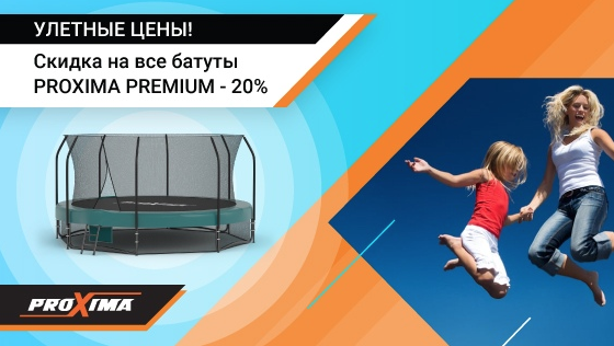 Батуты PROXIMA Premium - это отличное качество, безопасность, надежность, долговечность, эргономичный дизайн, удобство сборки и хранения. Воспользуйтесь специальным предложением прямо сейчас!